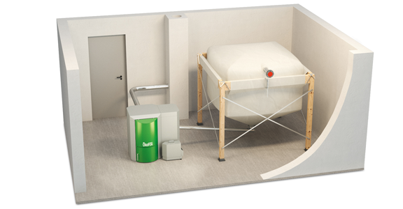 There are some basic requirements for a pellet storage room. It must be at least 8cm wider than the flexi tank itself and 30cm longer than the tank on the side with the filling unit.