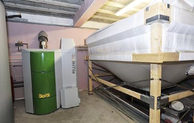 The 56kW Pellematic boiler and Flexilo wood pellet storage tank in-situ