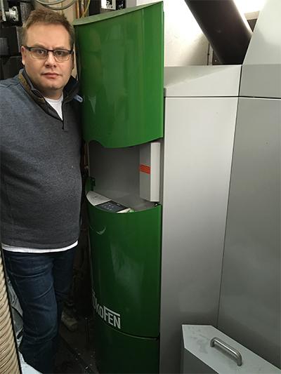 Mike Bandeira with the new Ökofen Pelematic boiler